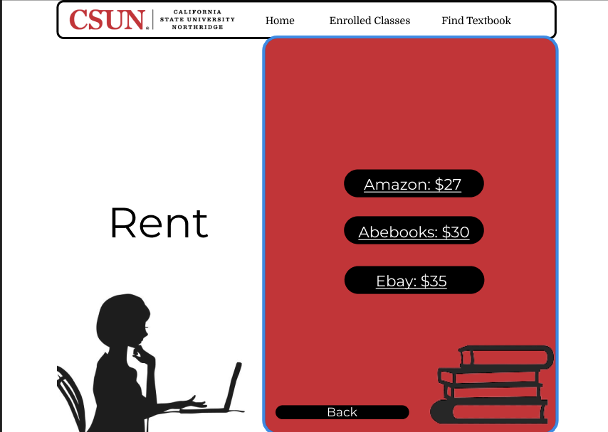 We believe that by creating a website that has links that lead to web pages where textbooks can be purchased for CSUN students like Autumn, We will reduce the amount of time it takes students to purchase textbooks and allow them to buy it at a lower cost. we will know this to be true when we see students using the website whenever they need a textbook.