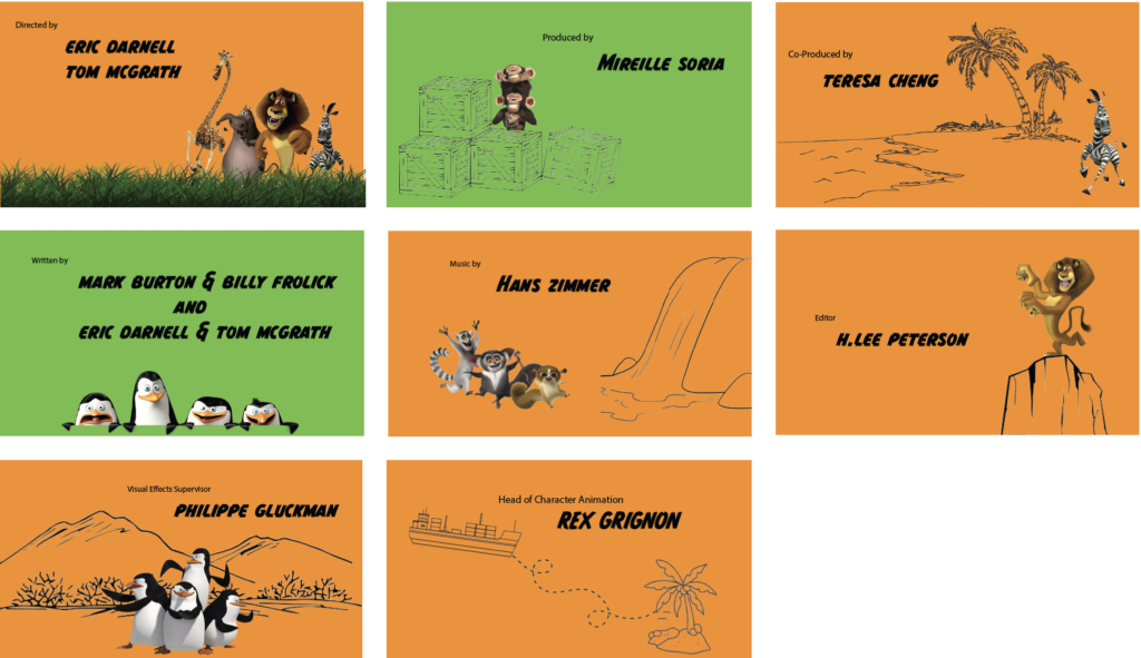 For this project, I’ll be creating the end credits for the beloved 2005 film Madagascar, capturing the essence of its wild zoo animal adventures through a vibrant and dynamic sequence.
