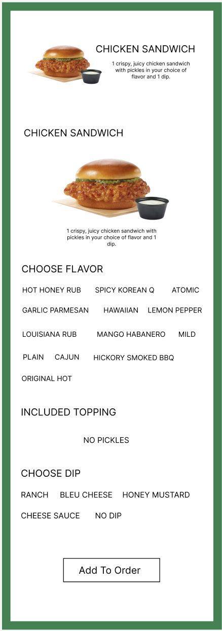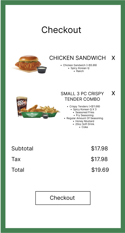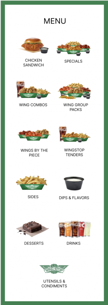 Wingstop currently does not have a Kiosk in any of their locations. Orders are either made from the website, app or in-person. The website is very user friendly and allows users easy access to menu and to order the items. This kiosk will allow customers to easily place there order at any location.